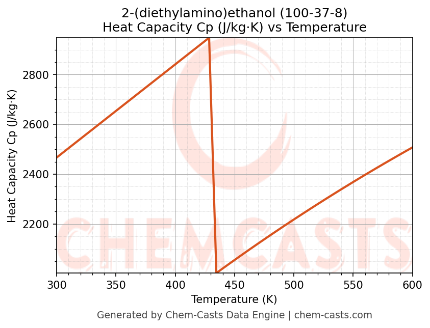- Specific heat capacity (Cp) indicates the amount of energy required to raise the temperature of 2-(diethylamino)ethanol and is critical for energy balance and heat-exchanger design.