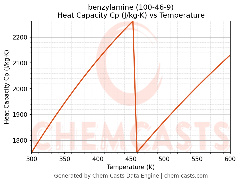 - Specific heat capacity (Cp) indicates the amount of energy required to raise the temperature of benzylamine and is critical for energy balance and heat-exchanger design.
