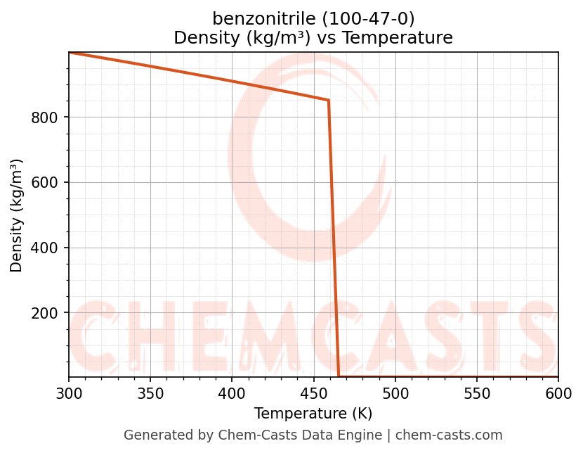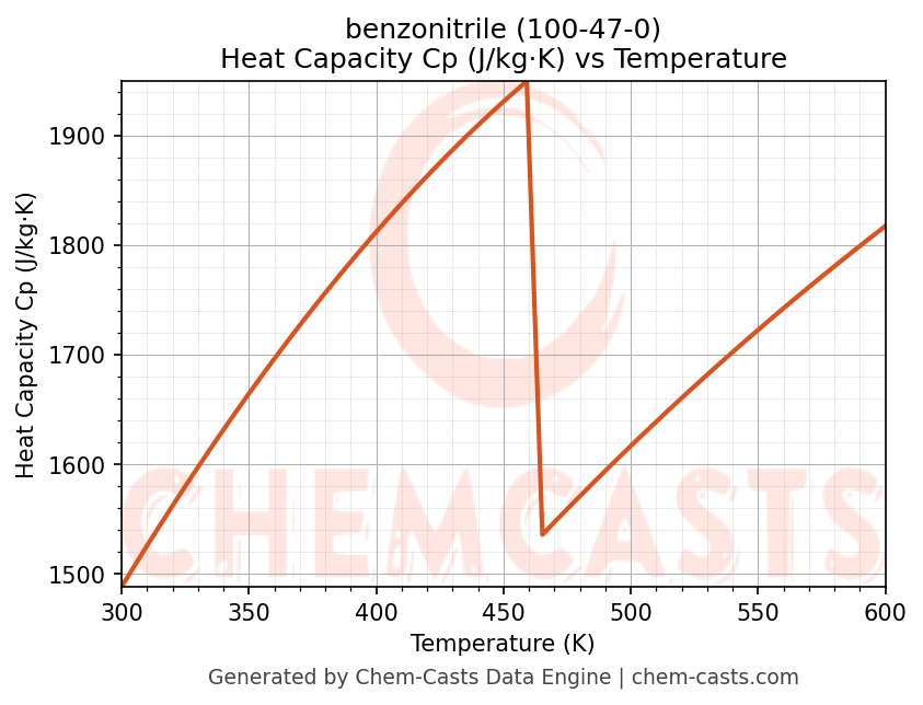- Specific heat capacity (Cp) indicates the amount of energy required to raise the temperature of benzonitrile and is critical for energy balance and heat-exchanger design.