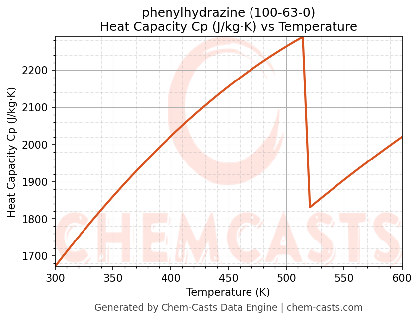 - Specific heat capacity (Cp) indicates the amount of energy required to raise the temperature of phenylhydrazine and is critical for energy balance and heat-exchanger design.
