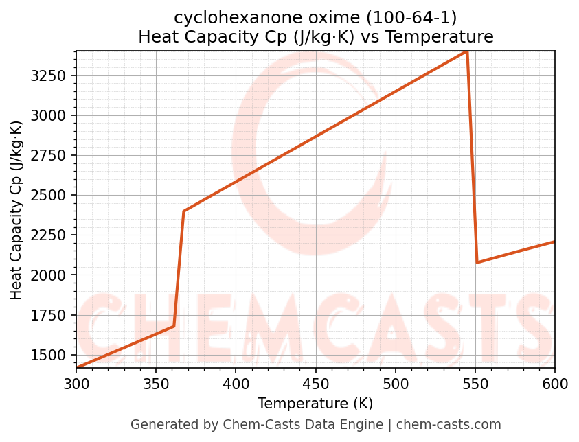 - Specific heat capacity (Cp) indicates the amount of energy required to raise the temperature of cyclohexanone oxime and is critical for energy balance and heat-exchanger design.