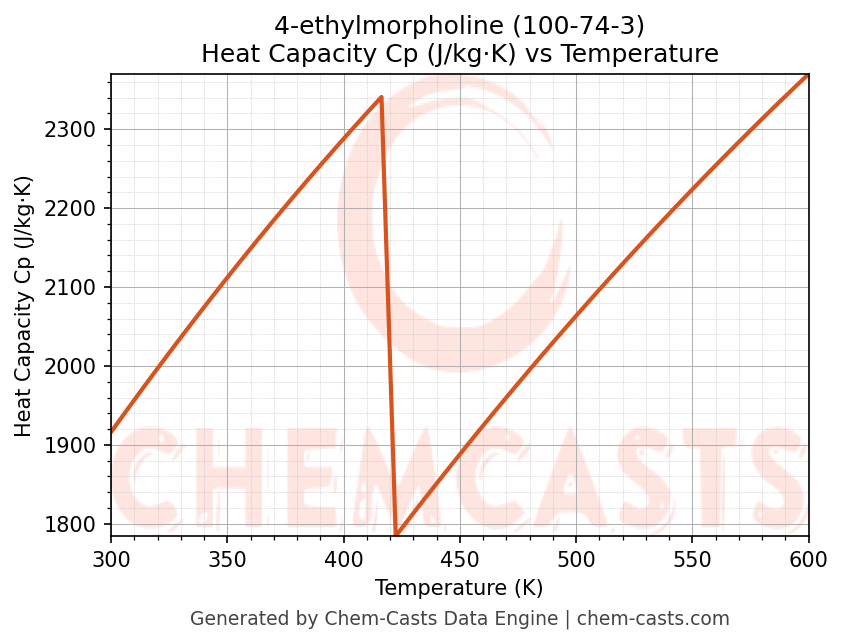 - Specific heat capacity (Cp) indicates the amount of energy required to raise the temperature of 4-ethylmorpholine and is critical for energy balance and heat-exchanger design.