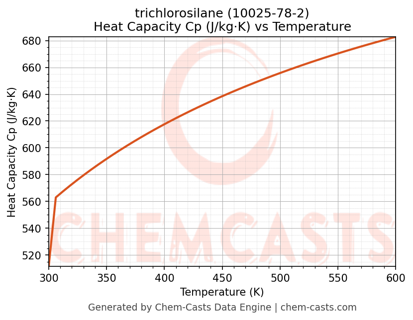 - Specific heat capacity (Cp) indicates the amount of energy required to raise the temperature of trichlorosilane and is critical for energy balance and heat-exchanger design.