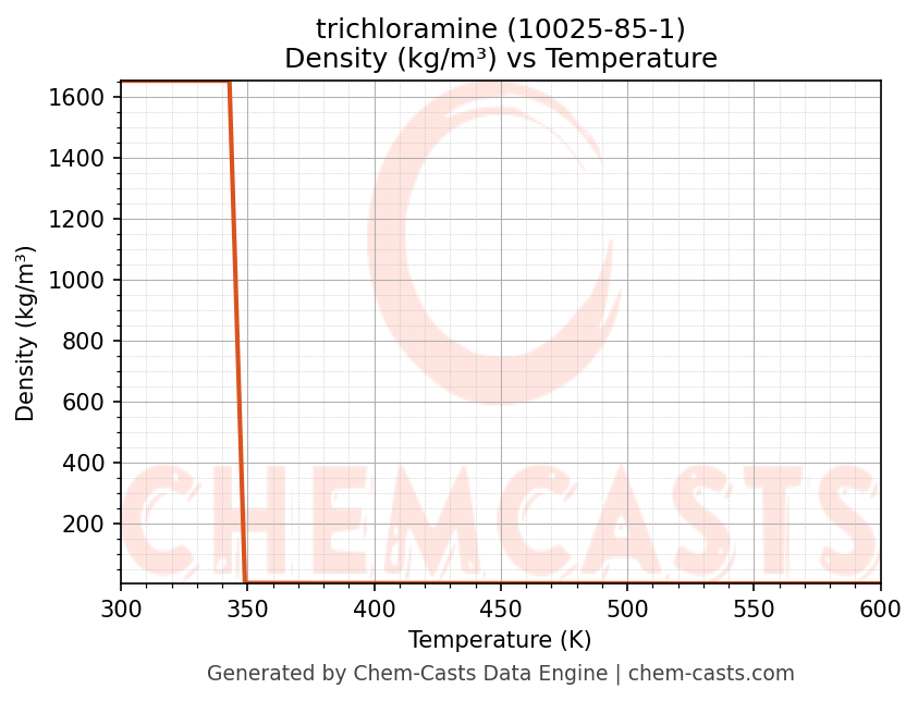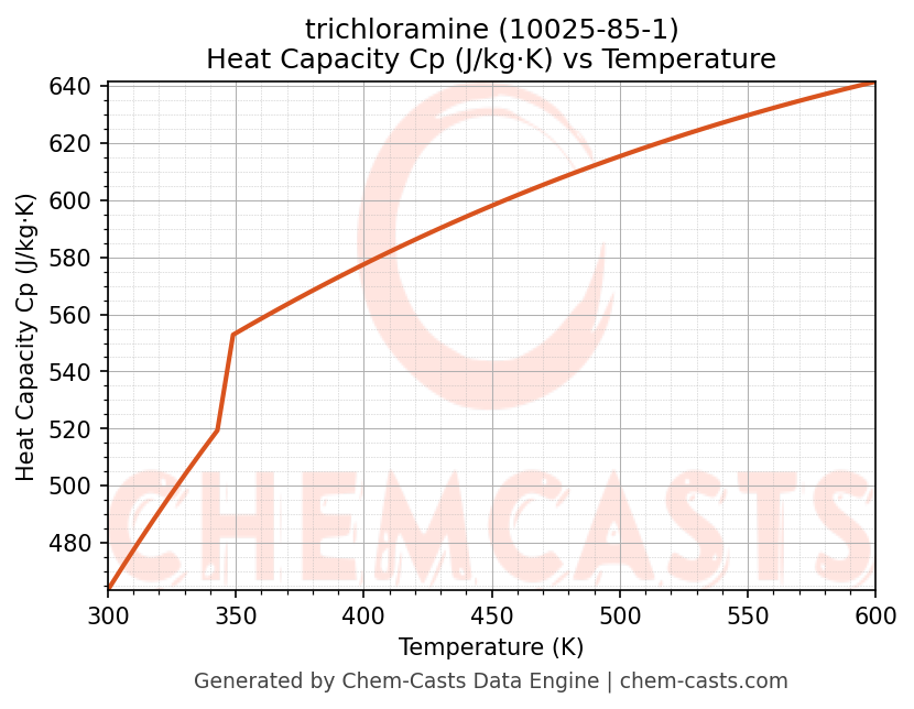 - Specific heat capacity (Cp) indicates the amount of energy required to raise the temperature of trichloramine and is critical for energy balance and heat-exchanger design.