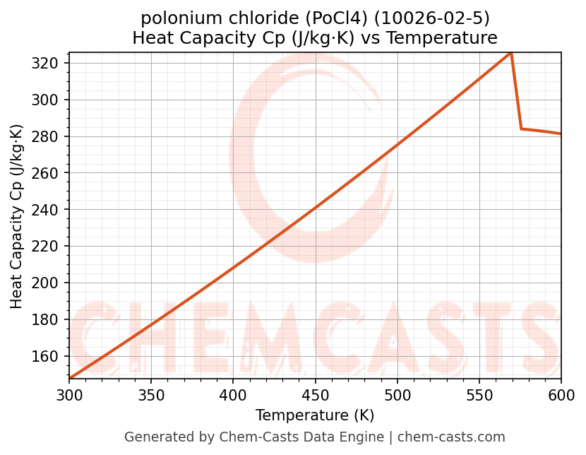 - Specific heat capacity (Cp) indicates the amount of energy required to raise the temperature of polonium chloride (PoCl4) and is critical for energy balance and heat-exchanger design.