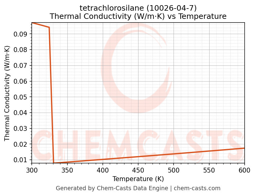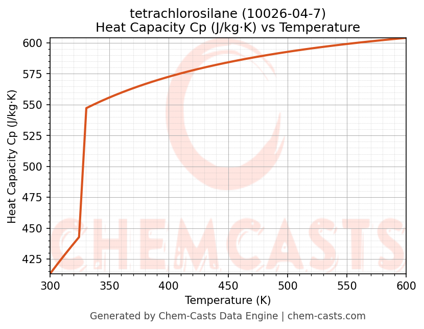- Specific heat capacity (Cp) indicates the amount of energy required to raise the temperature of tetrachlorosilane and is critical for energy balance and heat-exchanger design.