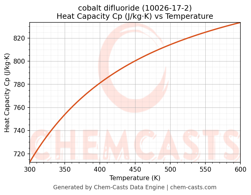- Specific heat capacity (Cp) indicates the amount of energy required to raise the temperature of cobalt difluoride and is critical for energy balance and heat-exchanger design.