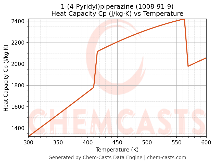- Specific heat capacity (Cp) indicates the amount of energy required to raise the temperature of 1-(4-Pyridyl)piperazine and is critical for energy balance and heat-exchanger design.