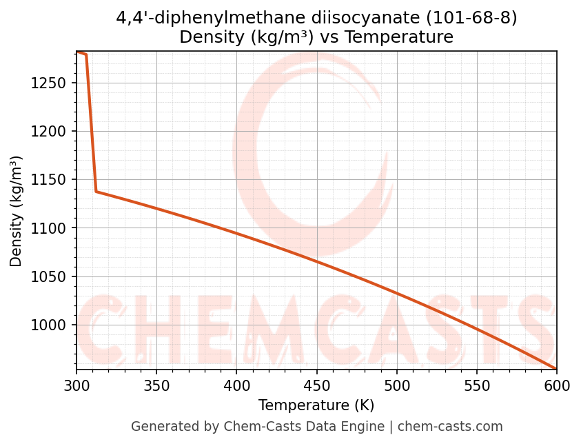4,4'-diphenylmethane diisocyanate Thermodynamic Properties vs Temperature (CAS 101-68-8)