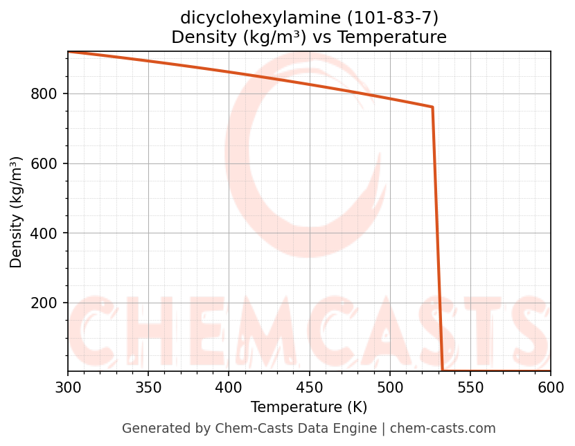 - Specific heat capacity (Cp) indicates the amount of energy required to raise the temperature of dicyclohexylamine and is critical for energy balance and heat-exchanger design.