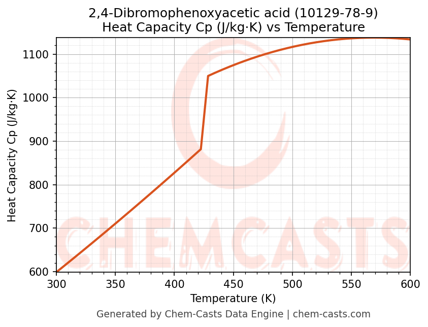- Specific heat capacity (Cp) indicates the amount of energy required to raise the temperature of 2,4-Dibromophenoxyacetic acid and is critical for energy balance and heat-exchanger design.