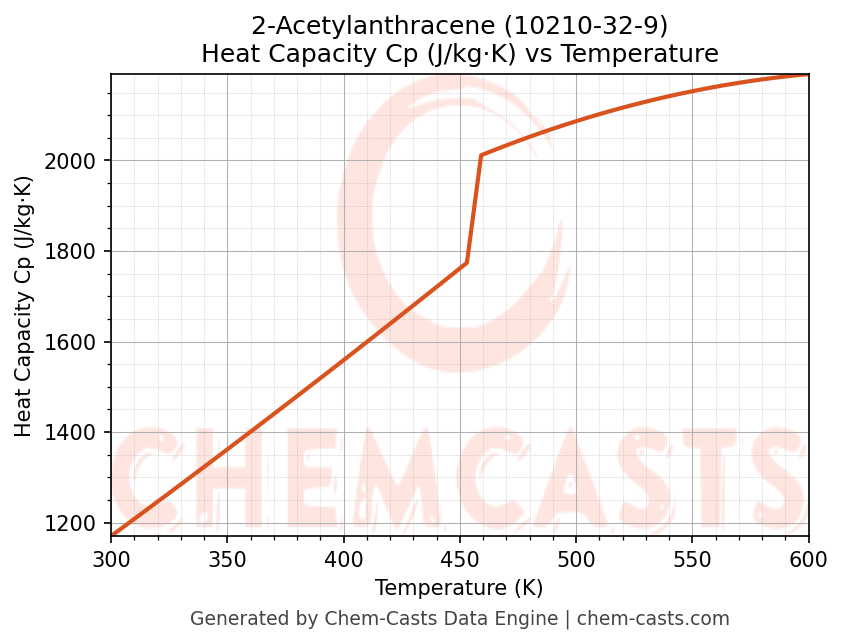 - Specific heat capacity (Cp) indicates the amount of energy required to raise the temperature of 2-Acetylanthracene and is critical for energy balance and heat-exchanger design.