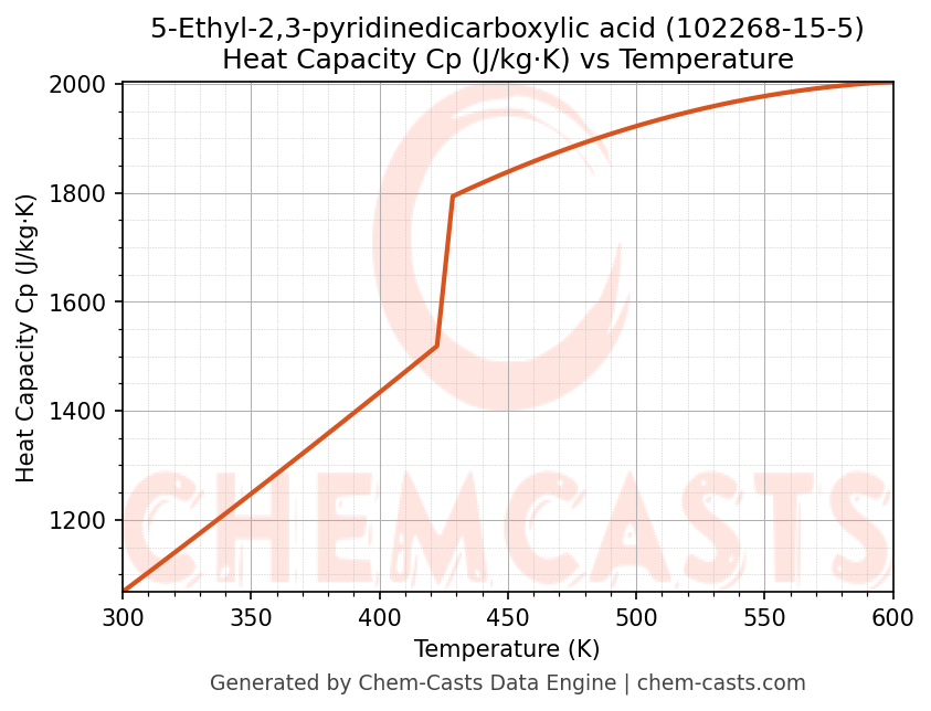 - Specific heat capacity (Cp) indicates the amount of energy required to raise the temperature of 5-Ethyl-2,3-pyridinedicarboxylic acid and is critical for energy balance and heat-exchanger design.