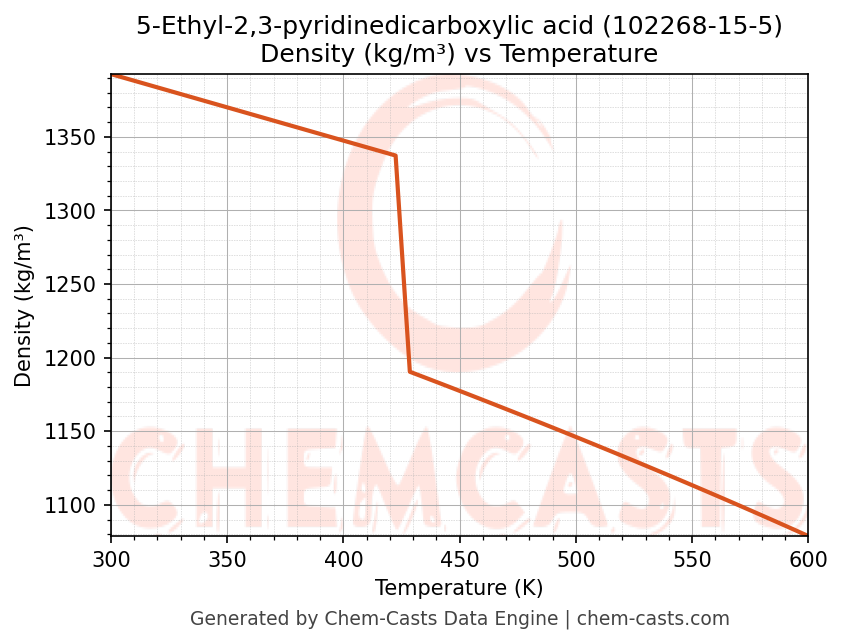 This page presents the temperature-dependent thermodynamic and transport properties of 5-Ethyl-2,3-pyridinedicarboxylic acid (CAS 102268-15-5) calculated at a constant pressure of 1 atm (101325 Pa) over the temperature range 250-500 K.