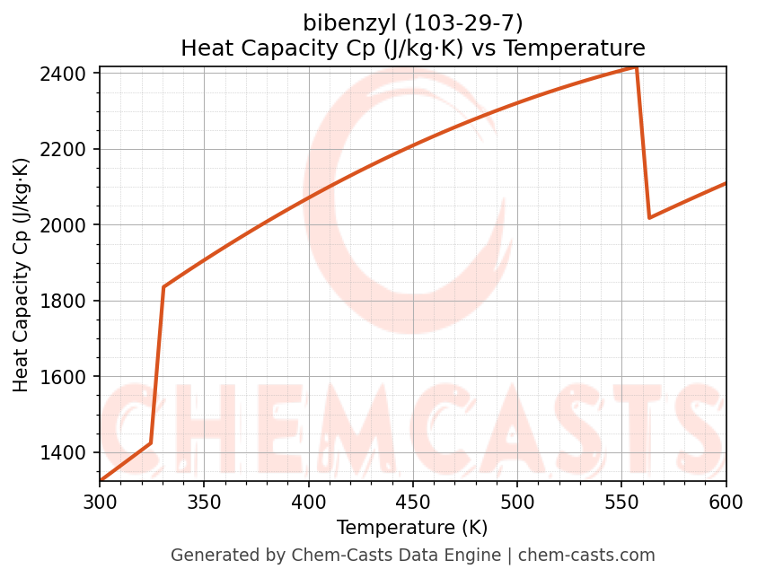 - Specific heat capacity (Cp) indicates the amount of energy required to raise the temperature of bibenzyl and is critical for energy balance and heat-exchanger design.