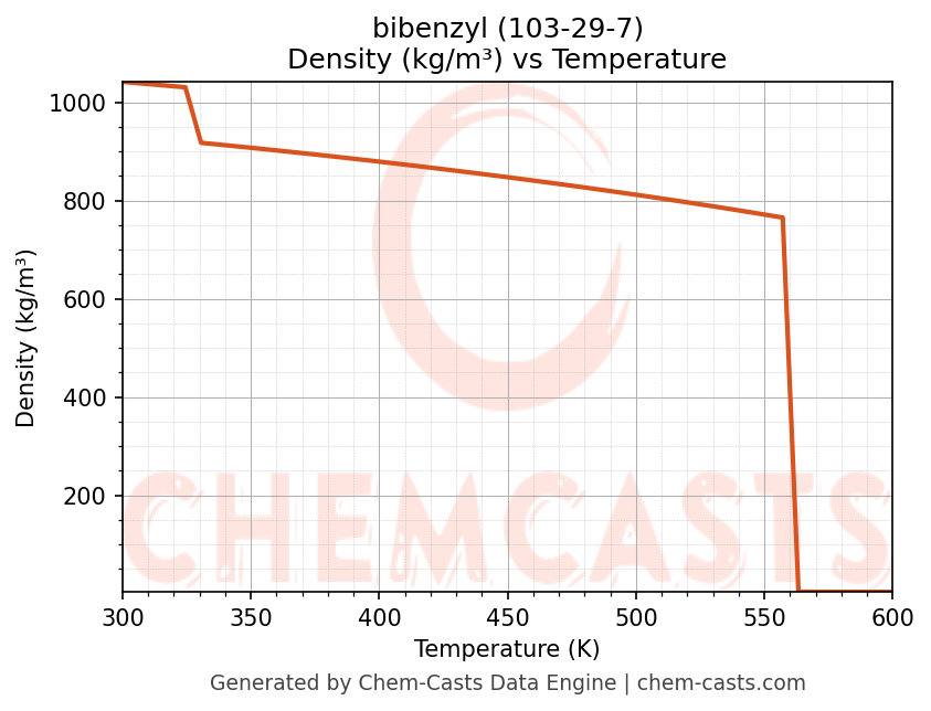 This page presents the temperature-dependent thermodynamic and transport properties of bibenzyl (CAS 103-29-7) calculated at a constant pressure of 1 atm (101325 Pa) over the temperature range 250-500 K.