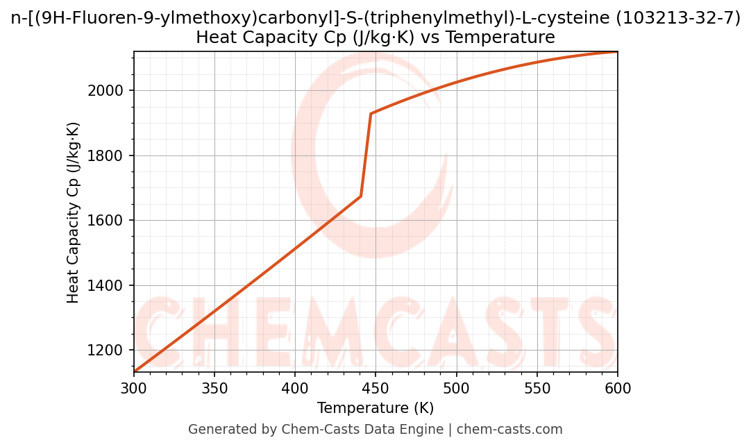 ![Heat Capacity (Cp) vs Temperature chart for n-[(9H-Fluoren-9-ylmethoxy)carbonyl]-S-(triphenylmethyl)-L-cysteine (CAS 103213-32-7)](https://chemcasts-prod.s3.ap-south-1.amazonaws.com/chem_plots_pconst/103213-32-7-cp.png)