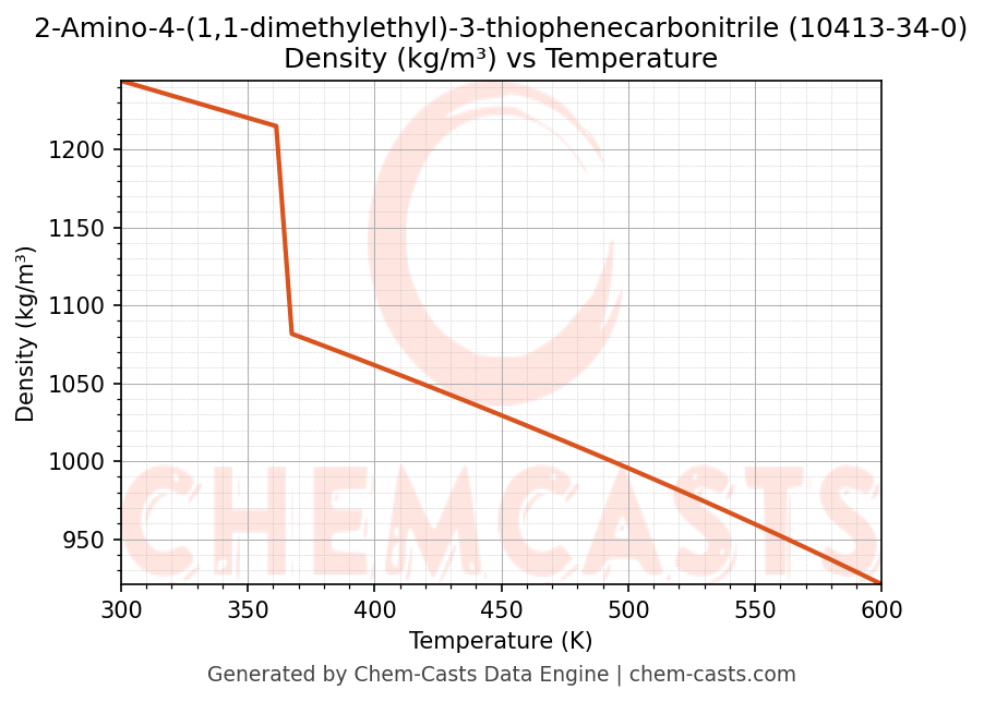 - Specific heat capacity (Cp) indicates the amount of energy required to raise the temperature of 2-Amino-4-(1,1-dimethylethyl)-3-thiophenecarbonitrile and is critical for energy balance and heat-exchanger design.