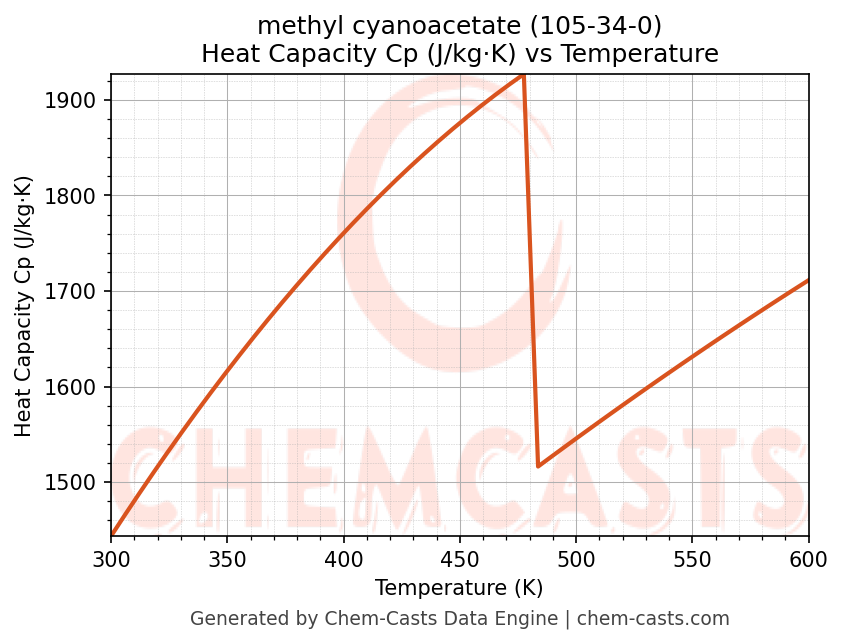 - Specific heat capacity (Cp) indicates the amount of energy required to raise the temperature of methyl cyanoacetate and is critical for energy balance and heat-exchanger design.
