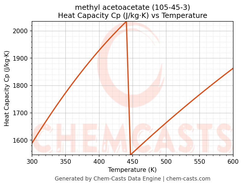 - Specific heat capacity (Cp) indicates the amount of energy required to raise the temperature of methyl acetoacetate and is critical for energy balance and heat-exchanger design.