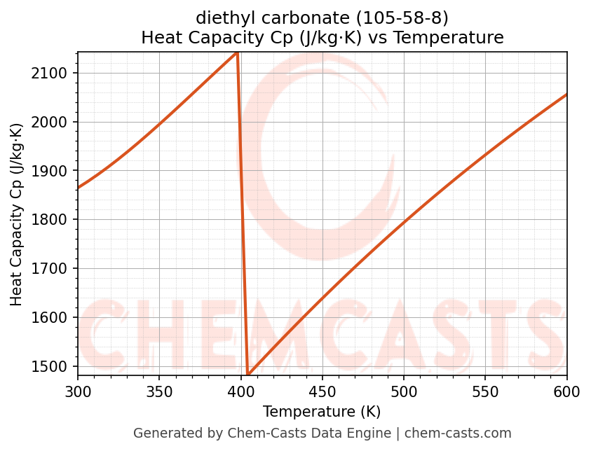 - Specific heat capacity (Cp) indicates the amount of energy required to raise the temperature of diethyl carbonate and is critical for energy balance and heat-exchanger design.