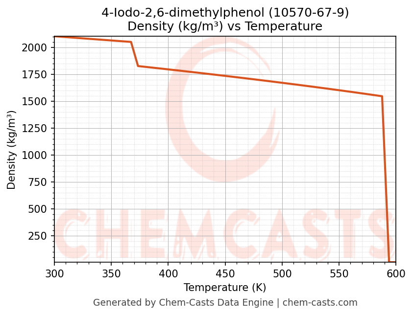 This page presents the temperature-dependent thermodynamic and transport properties of 4-Iodo-2,6-dimethylphenol (CAS 10570-67-9) calculated at a constant pressure of 1 atm (101325 Pa) over the temperature range 250-500 K.