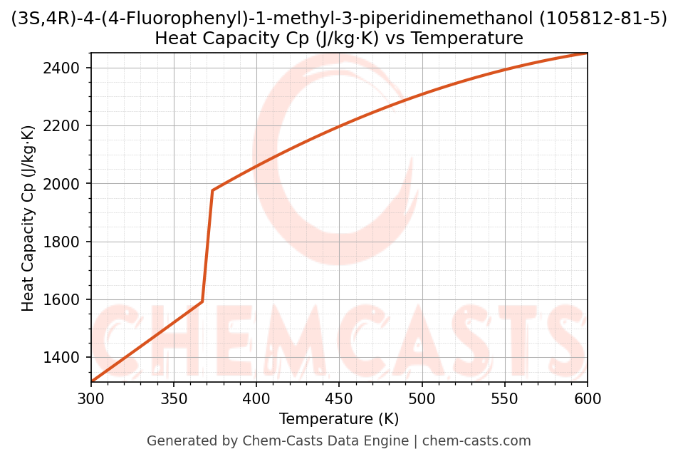 - Specific heat capacity (Cp) indicates the amount of energy required to raise the temperature of (3S,4R)-4-(4-Fluorophenyl)-1-methyl-3-piperidinemethanol and is critical for energy balance and heat-exchanger design.