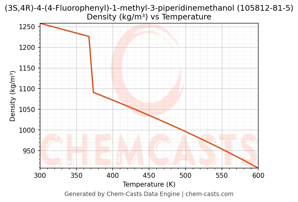 This page presents the temperature-dependent thermodynamic and transport properties of (3S,4R)-4-(4-Fluorophenyl)-1-methyl-3-piperidinemethanol (CAS 105812-81-5) calculated at a constant pressure of 1 atm (101325 Pa) over the temperature range 250-500 K.