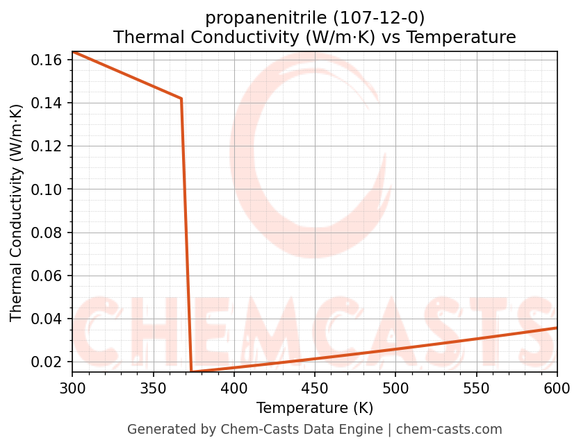 - Specific heat capacity (Cp) indicates the amount of energy required to raise the temperature of propanenitrile and is critical for energy balance and heat-exchanger design.