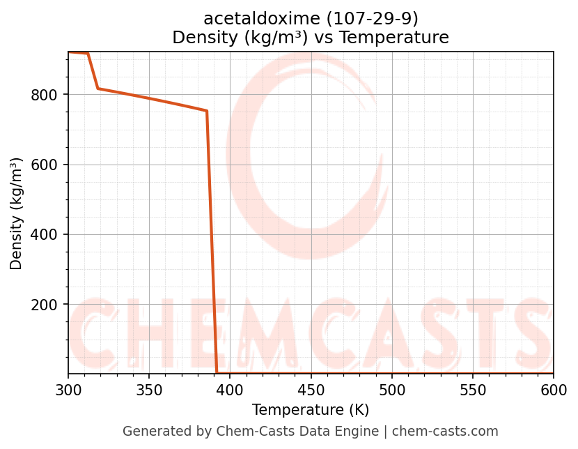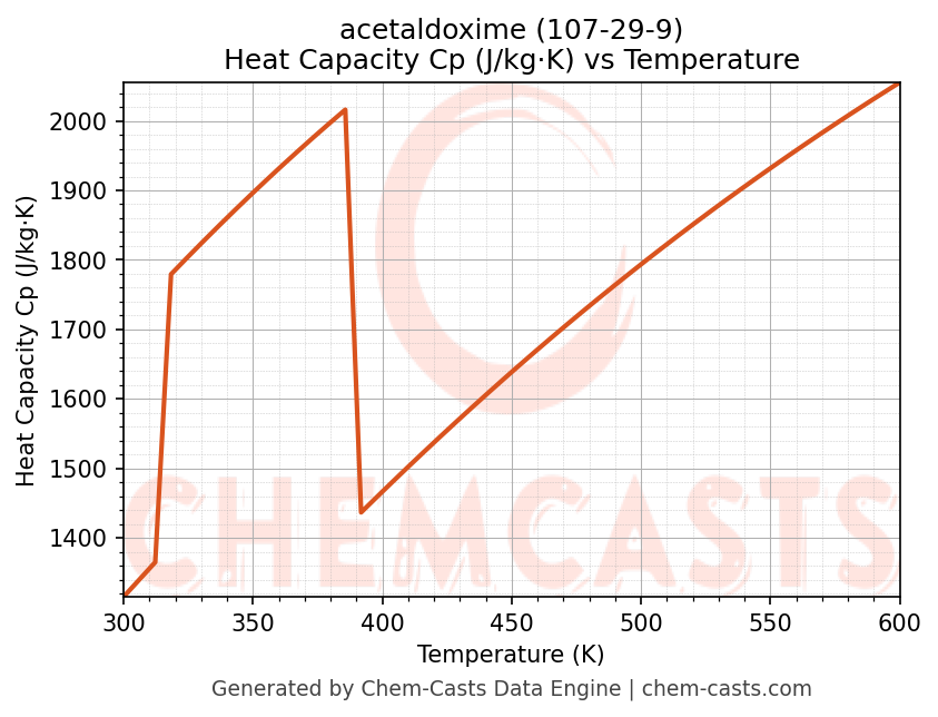 - Specific heat capacity (Cp) indicates the amount of energy required to raise the temperature of acetaldoxime and is critical for energy balance and heat-exchanger design.