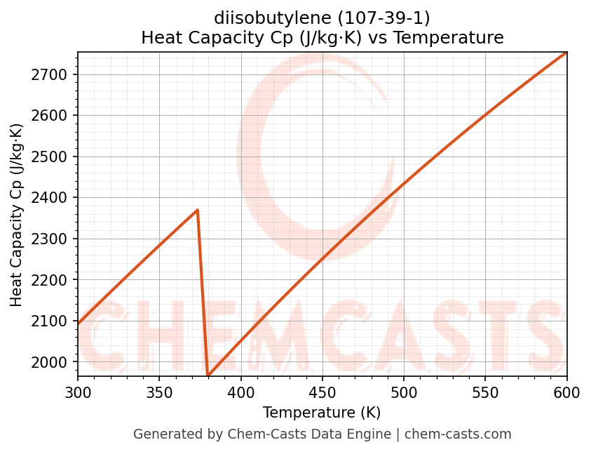 - Specific heat capacity (Cp) indicates the amount of energy required to raise the temperature of diisobutylene and is critical for energy balance and heat-exchanger design.