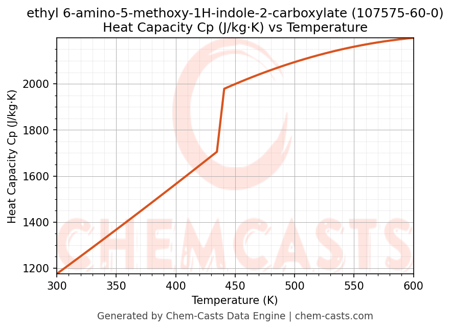 - Specific heat capacity (Cp) indicates the amount of energy required to raise the temperature of ethyl 6-amino-5-methoxy-1H-indole-2-carboxylate and is critical for energy balance and heat-exchanger design.