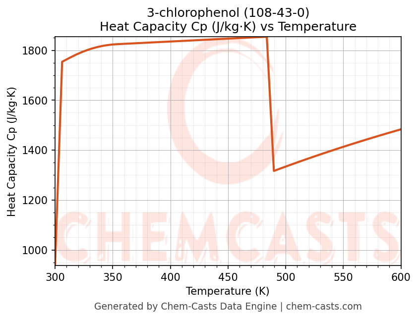 - Specific heat capacity (Cp) indicates the amount of energy required to raise the temperature of 3-chlorophenol and is critical for energy balance and heat-exchanger design.
