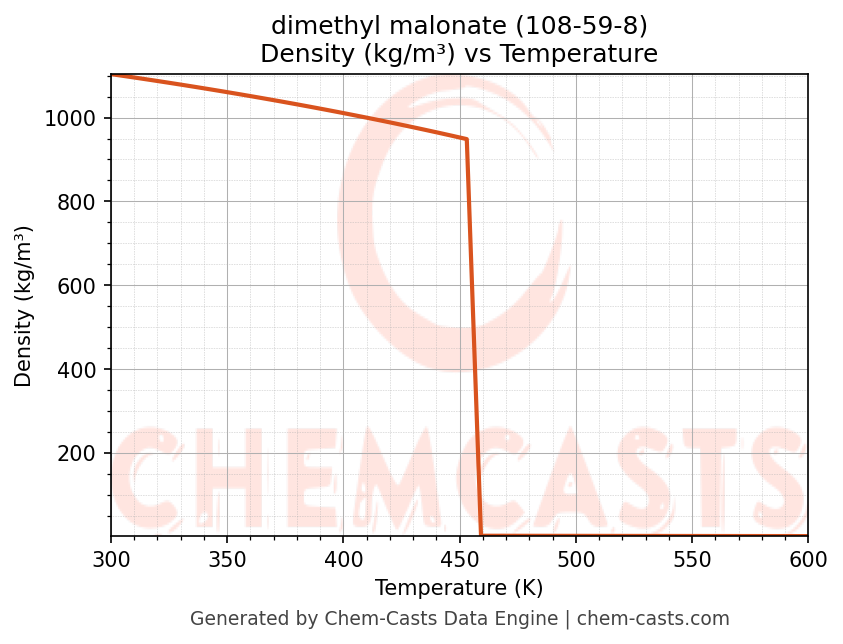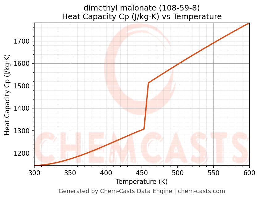 - Specific heat capacity (Cp) indicates the amount of energy required to raise the temperature of dimethyl malonate and is critical for energy balance and heat-exchanger design.