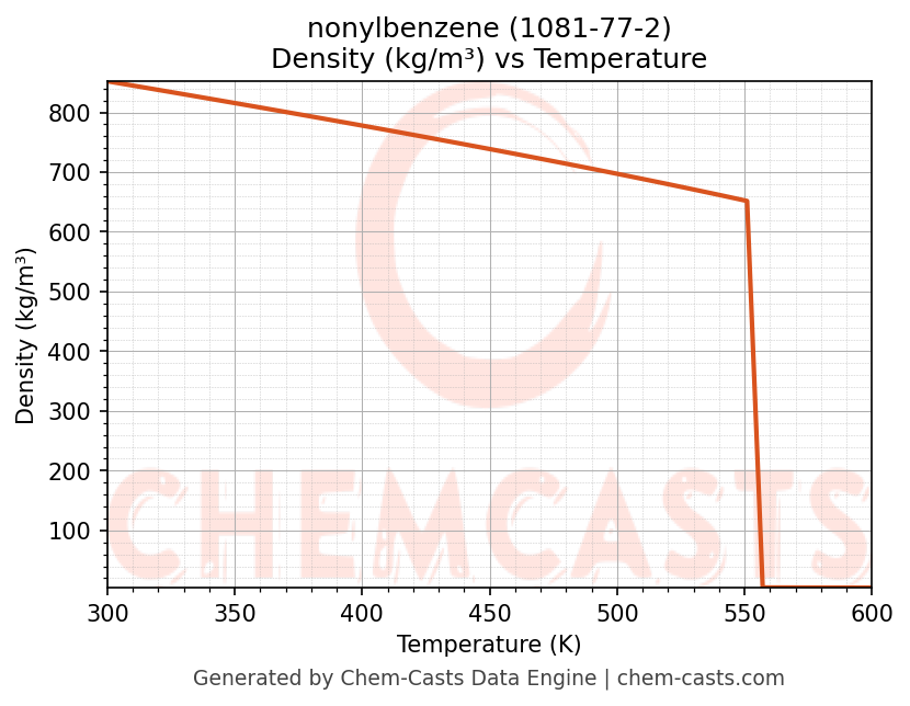 nonylbenzene Thermodynamic Properties vs Temperature (CAS 1081-77-2)