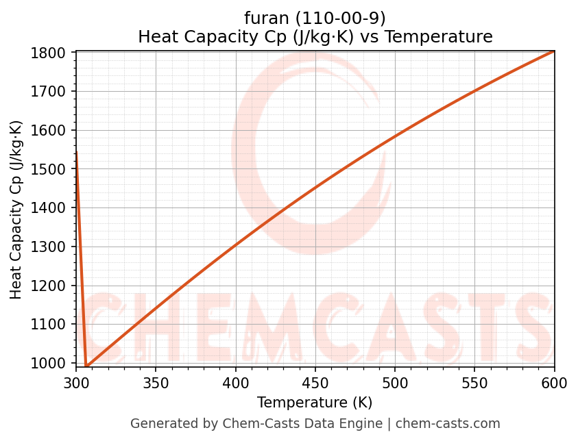 - Specific heat capacity (Cp) indicates the amount of energy required to raise the temperature of furan and is critical for energy balance and heat-exchanger design.
