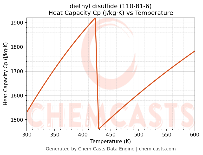 - Specific heat capacity (Cp) indicates the amount of energy required to raise the temperature of diethyl disulfide and is critical for energy balance and heat-exchanger design.