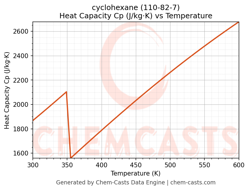 - Specific heat capacity (Cp) indicates the amount of energy required to raise the temperature of cyclohexane and is critical for energy balance and heat-exchanger design.