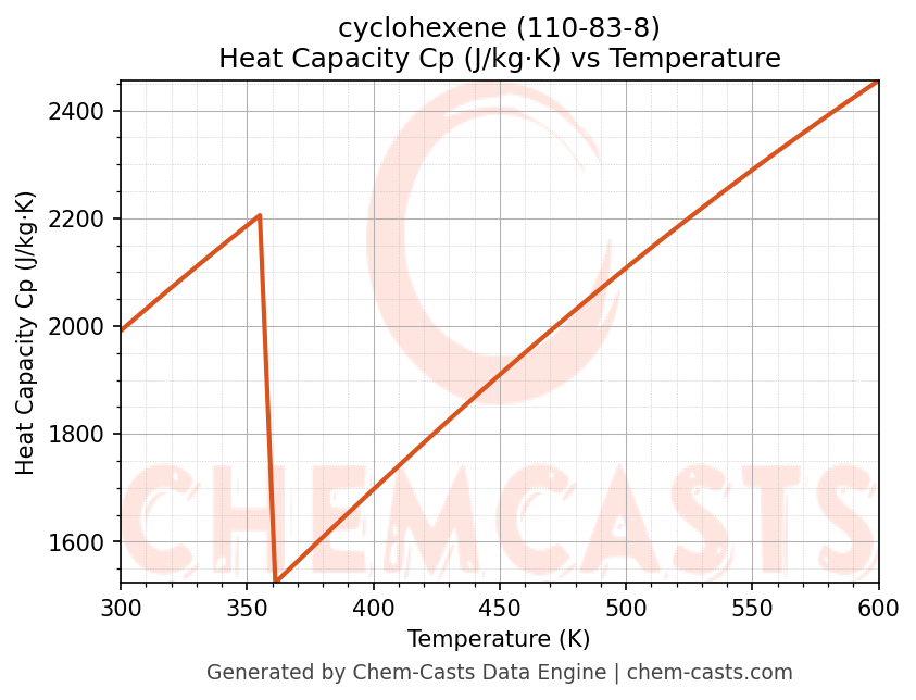 - Specific heat capacity (Cp) indicates the amount of energy required to raise the temperature of cyclohexene and is critical for energy balance and heat-exchanger design.