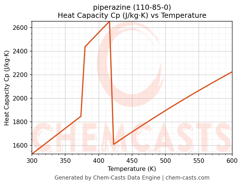 piperazine Thermodynamic Properties vs Temperature (CAS 110-85-0)
