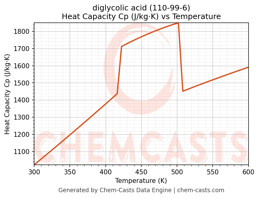 - Specific heat capacity (Cp) indicates the amount of energy required to raise the temperature of diglycolic acid and is critical for energy balance and heat-exchanger design.