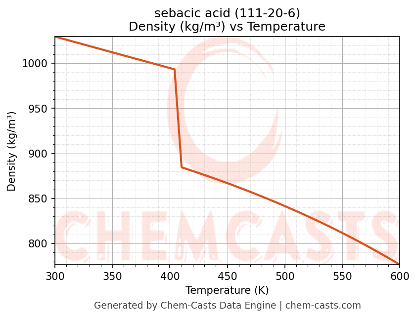 sebacic acid Thermodynamic Properties vs Temperature (CAS 111-20-6)