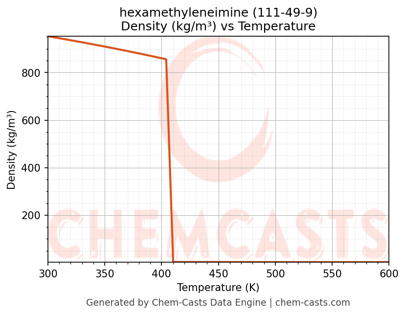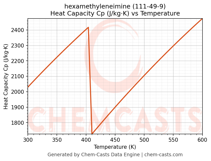 - Specific heat capacity (Cp) indicates the amount of energy required to raise the temperature of hexamethyleneimine and is critical for energy balance and heat-exchanger design.
