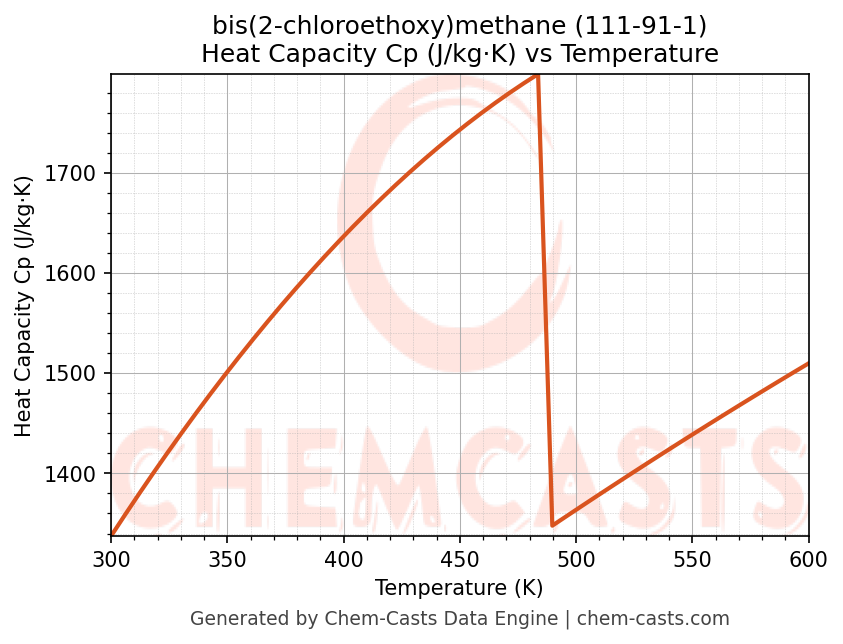 - Specific heat capacity (Cp) indicates the amount of energy required to raise the temperature of bis(2-chloroethoxy)methane and is critical for energy balance and heat-exchanger design.
