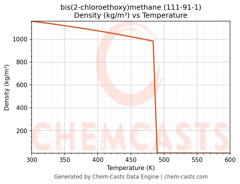 This page presents the temperature-dependent thermodynamic and transport properties of bis(2-chloroethoxy)methane (CAS 111-91-1) calculated at a constant pressure of 1 atm (101325 Pa) over the temperature range 250-500 K.