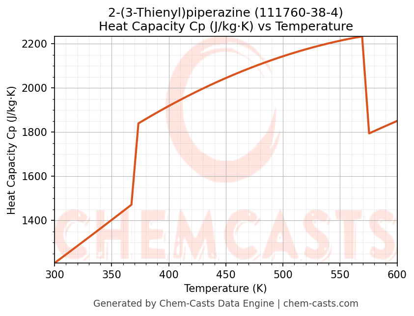 - Specific heat capacity (Cp) indicates the amount of energy required to raise the temperature of 2-(3-Thienyl)piperazine and is critical for energy balance and heat-exchanger design.