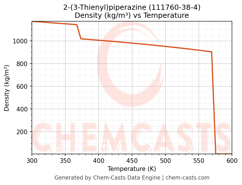 This page presents the temperature-dependent thermodynamic and transport properties of 2-(3-Thienyl)piperazine (CAS 111760-38-4) calculated at a constant pressure of 1 atm (101325 Pa) over the temperature range 250-500 K.