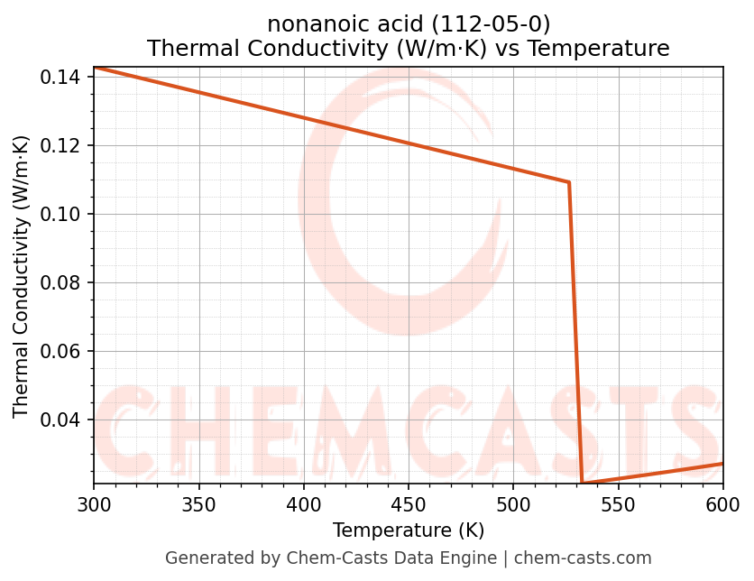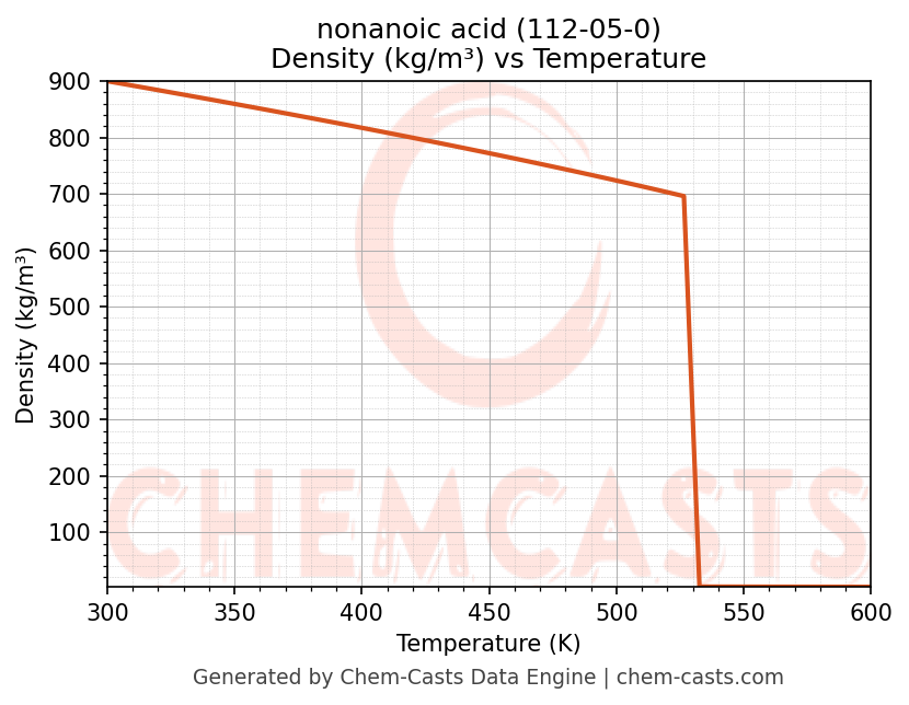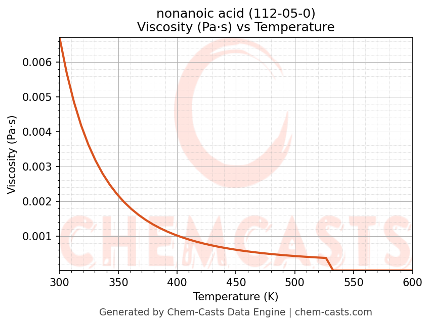 - Specific heat capacity (Cp) indicates the amount of energy required to raise the temperature of nonanoic acid and is critical for energy balance and heat-exchanger design.