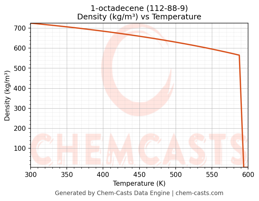 - Specific heat capacity (Cp) indicates the amount of energy required to raise the temperature of 1-octadecene and is critical for energy balance and heat-exchanger design.