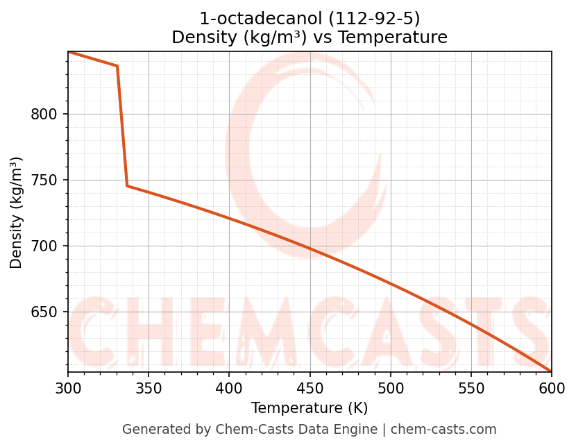 - Specific heat capacity (Cp) indicates the amount of energy required to raise the temperature of 1-octadecanol and is critical for energy balance and heat-exchanger design.